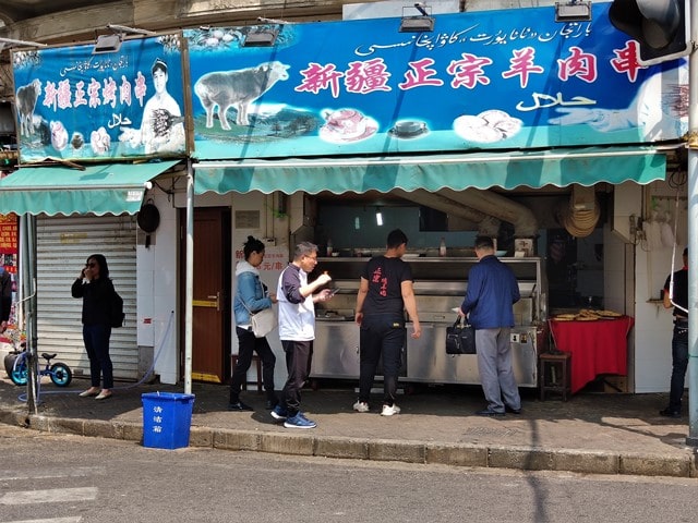 Chinese kebab (also called “chuan chuan” 串串 in China) in Xinjiang style. There is a little block in Huangpu district where the Xinjiang meat market resides, also where the freshly grilled kebabs can be found. The meat comes from the highlands of Xinjiang, better tasting and without the strong gamey taste. While there take a peek at the butcher shops where the local restaurants get their fresh top grade beef and mutton.