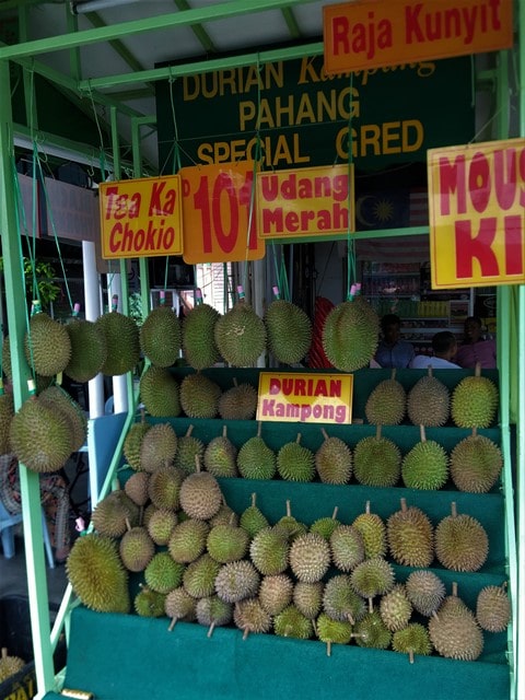 Further west of this market is for the fans of the King of the Fruits – durians. Nowadays there are too many varieties of durians with flashy names. The most famous and most expensive one is the Musang King (猫山王). Most locals protest the skyrocketed prices of Musang King by not eating them. Instead they opt for the old fashion “Kampung durian“. Kampung in Malay means village. This is the original variety where the durian is much smaller and odd shape, the flesh is thinner and the seeds are larger. However they have a unique flavor and quirky character. The older trees produces more bittersweet flavor, a preferred taste amongst durian enthusiasts.